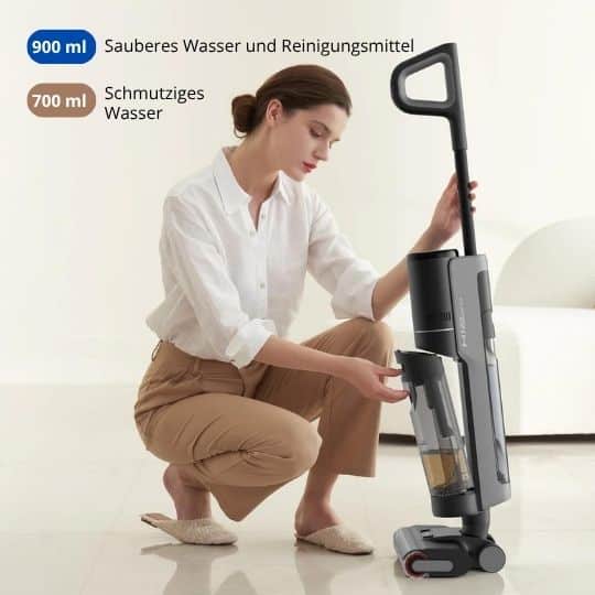 „Das ist lebensverändernd! Ich habe dank dieses Staubsaugers und Bodenreinigers so viel Zeit gespart. Ich muss mich nicht mehr um das Wechseln der Aufsätze und das Wischen kümmern, sodass ich bereits die Hälfte der Zeit spare. Außerdem muss ich den Staubsauger nicht mehr leeren oder reinigen, da alles automatisiert ist!“