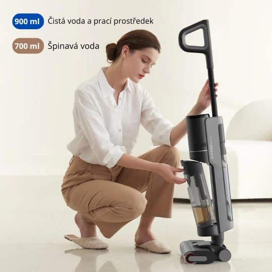 Díky nádržce o objemu 900 ml, která je větší než u předchozích modelů, stačí vodu a prací prostředek přidat pouze jednou a tekutina vydrží celý měsíc, než budete muset vyprázdnit druhou nádržku o objemu 700 ml.